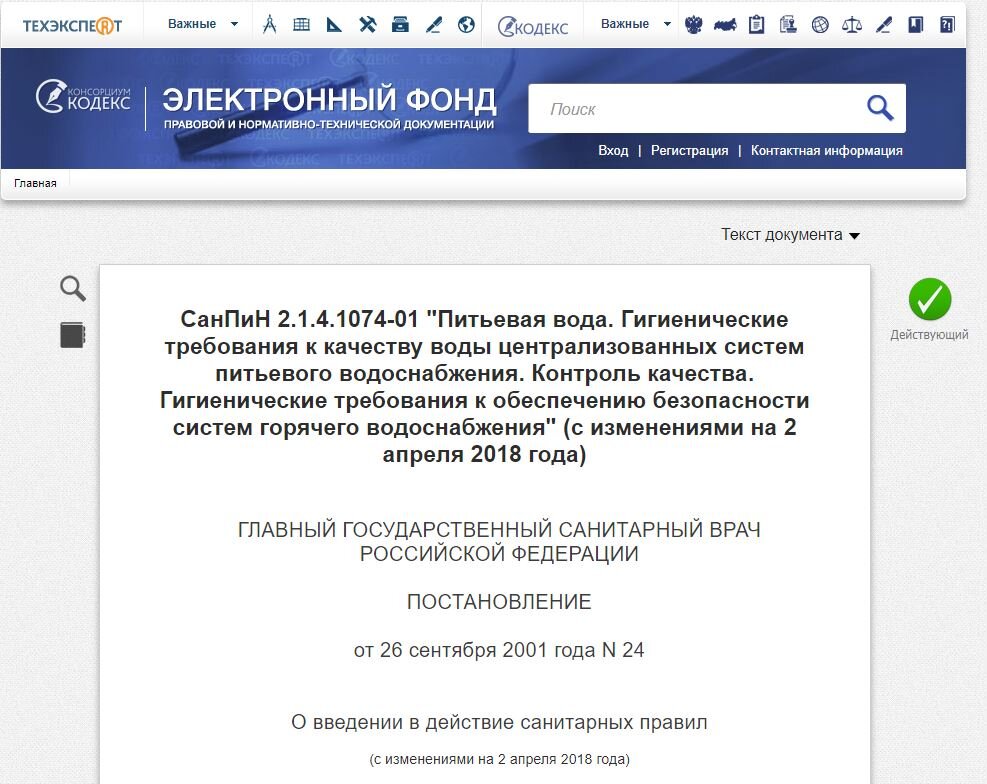 Химический и микробиологический состав воды централизованных систем питьевого водоснабжения должен отвечать требованиями СанПин 2.1.4.1074-01.