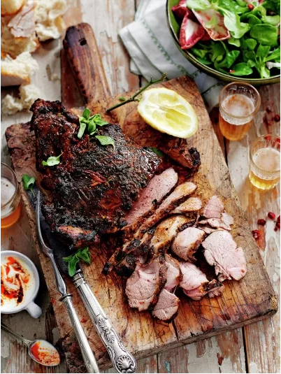 «Баранья нога по-мексикански, приготовленная на гриле с перцем, паприкой и фенхелем, подается с йогуртом хариссы. Вкусные! »