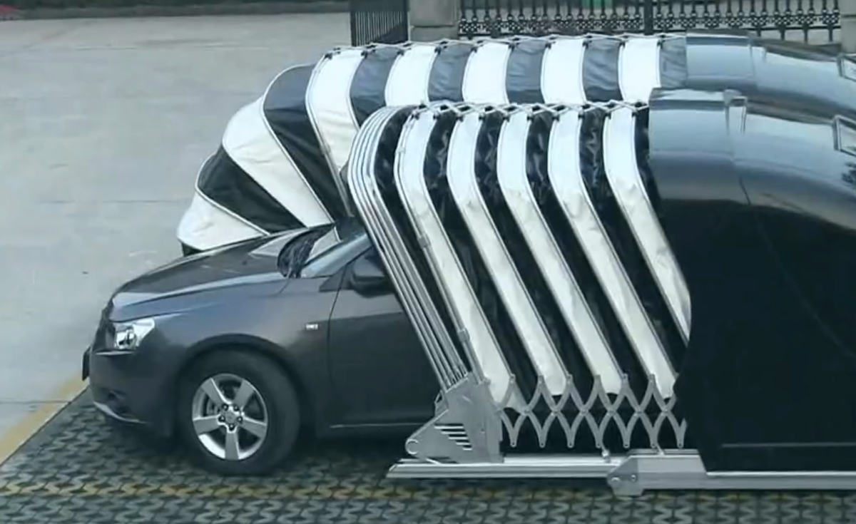Показываем переносные гаражи и рассказываем о их функциональных особенностях. Начнём с того, что есть несколько видов портативных гаражей: от экзотики (например, как на фото) до более классических вариантов. Особенность таких гаражей в том, что их можно собирать, разбирать и снова собирать. Пригодятся такие конструкции тем, у кого пока нет гаража на фундаменте или просто любителям путешествий на авто. Некоторые модели можно спокойно хранить в багажнике. С ним мы и начнём наш обзор. Сахатент Внешне напоминает чехол для автомобиля. По факту, это он и есть. Сахатент имеет два синтепоновых слоя. Верхнее покрытие полиуретановое. Последние года два активно стали производится такие гаражи из нанокомпозитных материалов. Занимается этим преимущественно Южная Корея. Размер определяется по классовому типу авто: мини, седан, минивэн, джин, универсал. Самый дорогой - для джипа (примерно 20 000 рублей). Несмотря на довольно компактный вид и схожесть с одеялом, вес гаража варьируется от 15 до 23 кг