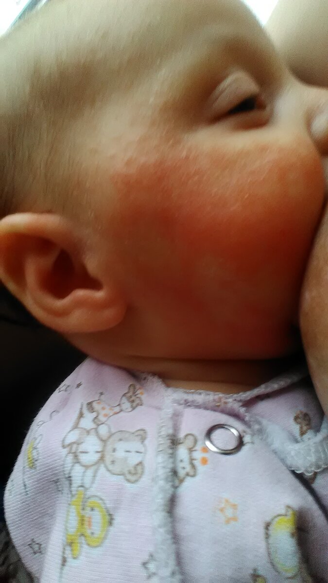На данном фото представлена пищевая аллергия,признаки следующие: 1.Мелкие красные прыщики,могуть быть внутри с прозрачной головкой 2.Зуд,вы заметите ребенок часто трогает лицо 3. При аллелгии всегда есть шелушение 4.Все эти красные пузырьки при запущенной стадии сливаются в одно или нескольно красных пятен Нам выписали лечение капли от зуда,и крем увлажняюший для новорождённых,также купала в листьях лаврового листа на кастрюлю 5 литров 20 листьев лаврушки, делала 10 процедур на ночь,можно в череде купать но она сушит кожу. Теперь перейдем к акне грудничка отличие от аллергии 1.Отсутствует зуд 2. Нет слияния в одно или нескольких красных пятен 3.Акне дейсвительно очень похоже на подростковую угревую сыпь,кпупные шишки с белой головкой Акне не требует лечения,оно проходит само собой через несколько месяцев.В любом из случаев при любых высыпаниях обращайтесь к специалисту.Дорогие подписчики следующая статья будет на тему:"Чем занять активного ребенка от 1,5 до 3 лет.