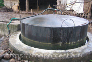 Объём биоустановки может быть самым различным – от 4-6 м3 до, при необходимости, до нескольких десятков тонн сырья: всё зависит от Ваших потребностей. В качестве сырья можно использовать навоз, растительные остатки – сорняки, ботва, скошенная трава, органические отходы и т.п. Единственное обязательное условие – всё должно быть хорошо измельчено для того, чтобы бактерии быстрее и легче справлялись со своей задачей. Немаловажное замечание – сырьё должно быть как можно более разнообразным по составу, так как от этого зависит количество получаемого газа.
