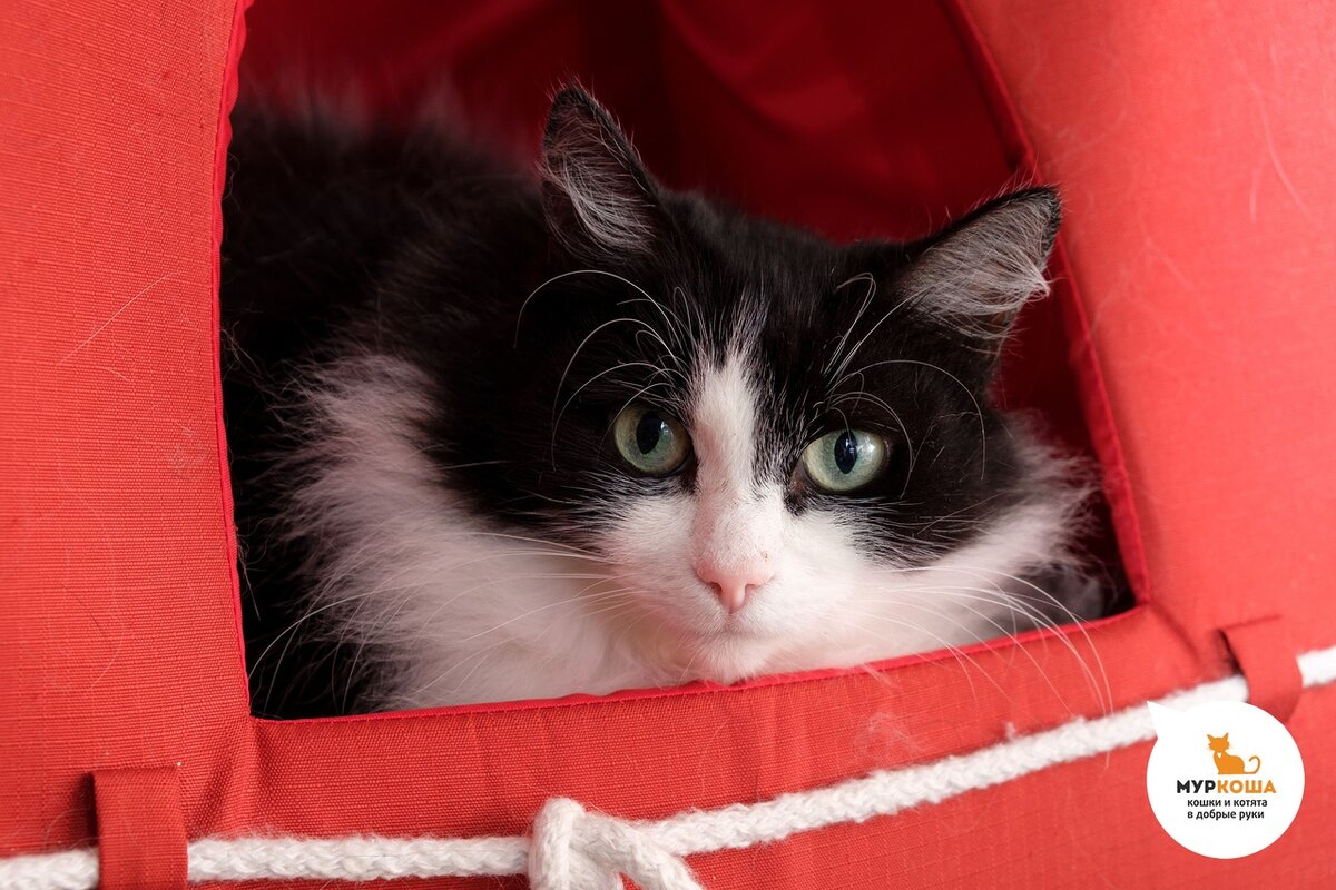 Засиделась пушистая дама у нас в "Муркоше", располнела, расцвела, из уличной растрепанной кошки превратилась в шикарное чёрно- белое облако. Всем хороша Марта: и шерсткой ухоженной пушистой, и глазищами желтыми на пол мордочки, и даже лишние килограммы, и те ей к лицу. И это у какого-то Васьки из соседнего подъезда 2 кило лишнего веса, а у нашей Марты исключительно 6 кило обаяния! Обаяние ведь лишним не бывает, правда? А если и бывает, то лишь чуть-чуть, и быстренько перерастает в грацию и стать под умелыми руками ответственного хозяина. Да и сама Марта усилия приложит, как только встретит хозяина – и сразу за фитнес. И прыжки освоит, и потягушки из йоги, и даже в бегах от дивана до кухни поучаствует. И пусть первого места Марте не видать, она ни разу не расстроится – не пристало такой даме переживать по пустякам. Марта точно знает, облака худыми не бывают! Облака они мягкие