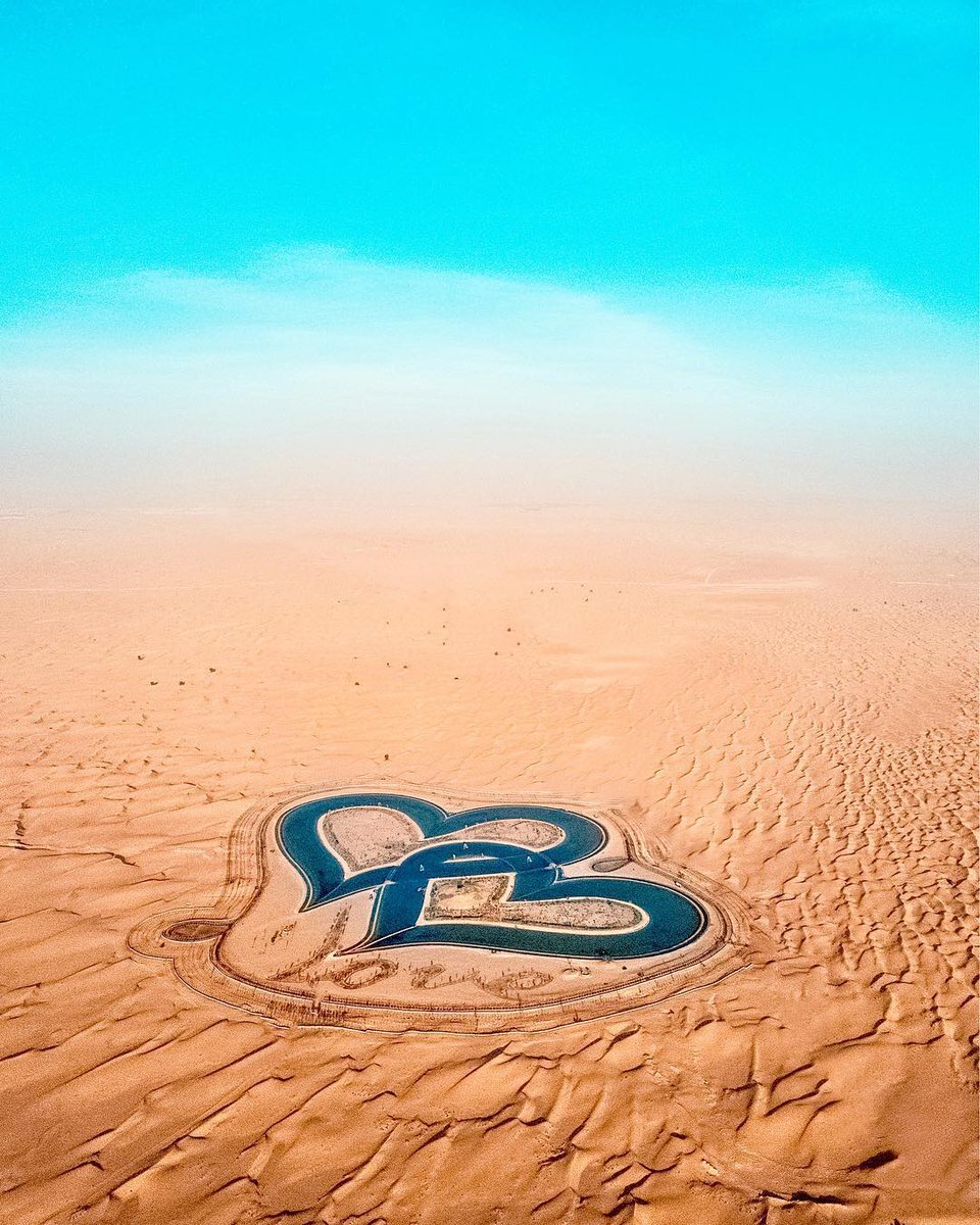 С высоты птичьего полета открывается изумительный вид на "Heart shaped lake", искусственное озеро по среди пустыни, которое принимает форму двух гигантских сердец. Это произведение строительного искусства Шейх Хамдан бин Мохаммед бин Рашид Аль Мактум, наследный принц Дубаи, назвал «Озера любви» и посвятил своим подданным и подписчикам в Инстаграм. Он выставил это фото с надписью, которая гласит: «Всем Вам». Озеро Любви находится в местечке Аль-Кудра. Счастья вам! Если понравилось, ставьте лайк и подпишитесь на канал !