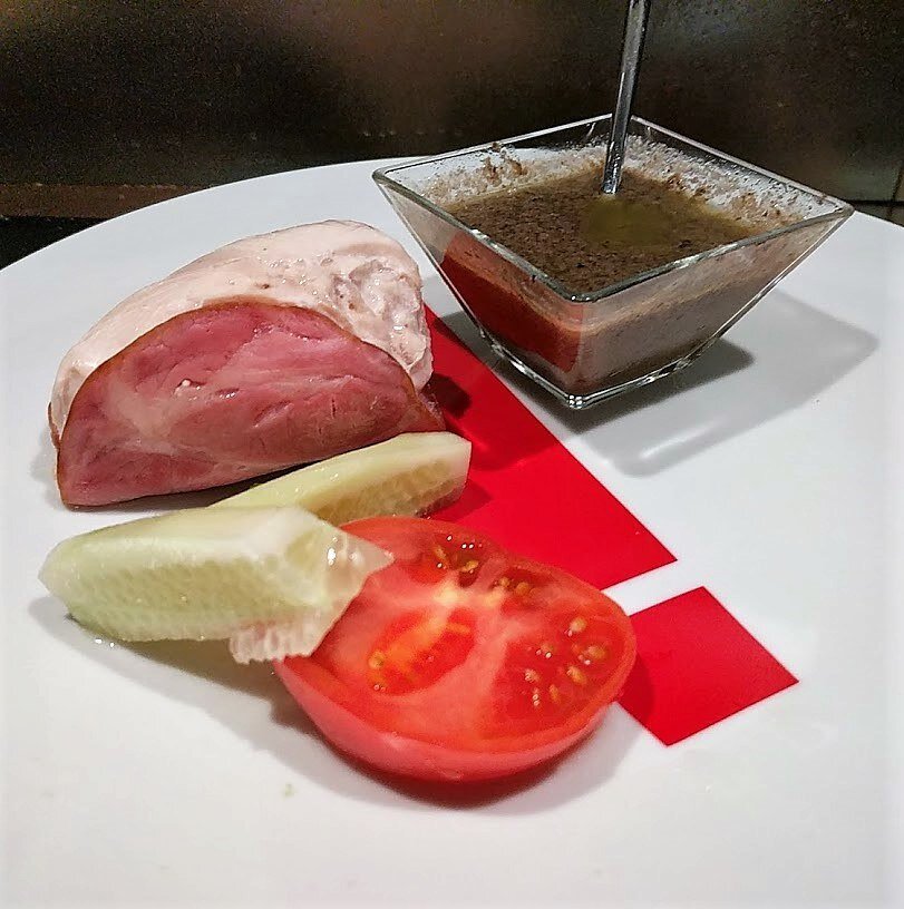 Нам нужно: Куриное филе, ветчина, для соуса - анчоусы, маслины, оливковое масло, лимон. Готовим: 1.НЕ ПЕРЕБОР? Да не. Всё значительно проще. Во-первых, никто не отменял импульсных покупок. Я иногда нет-нет, да и хапну с полки магазина маленькую баночку с анчоусами. Потом она долго стоит у меня в холодильнике, немым упрёком. И когда уже становится понятно, что и стоит она давно и вообще, а вдруг испортится – придумывается что-то. Во-вторых, иногда возникают какие-то излишки, которые, как говорится – ни два ни полтора. То есть вроде как и съесть это – ну а какой смысл, мало, и оставлять незачем. Ну и возникают всякие конструкции с ветчиной, беконом или что-то подобное. 2.ИНГРЕДИЕНТЫ. Куриное филе, ветчина. Для соуса – пара анчоусов, маслины, оливковое масло и лимон. 3.ФИЛЕ. Филе режем на порционные компактные куски и оборачиваем ломтиком ветчины. Потом беерём эту конструкцию и плотно оборачиваем пищевой плёнкой на манер конфеты. Плотно – это важно, можно в пару-тройку слоёв, и «хвости