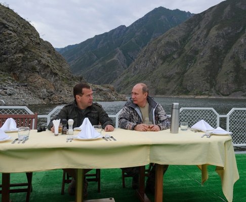 Президент РОССИИ В.В.Путин на рыбалке в Республике Тыва совместно с министрами и чиновниками