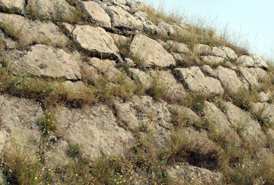 Невдалеке от Краснодона можно отыскать примечательный комплекс из каменных стен, который своими очертаниями явно намекает на рукотворное происхождение. Условно его можно разбить на пять крупнейших объектов. Первый элемент — хорошо сохранившийся каменный вал возле городского кладбища. Второй фрагмент — длинная россыпь больших валунов, удивительно ровненько расположенная под углом 80° относительно первой кладки. По другую сторону от вала можно обнаружить овражек, на дне которого располагается третий объект — горизонтальная площадка 35х4 м, подозрительно напоминающая древнейшее водохранилище с правильными овальными берегами. Четвертый фрагмент комплекса – расположенная на расстоянии наклонная стена в виде древней каменной кладки. Пятый объект тяжело причислить к рукотворным артефактам, но он отлично вписывается в общую картину и мог при желании служить частью оборонных сооружений. Это трехкилометровая природная гряда, расположенная параллельно к блочной кладке. Фото пятого участка.