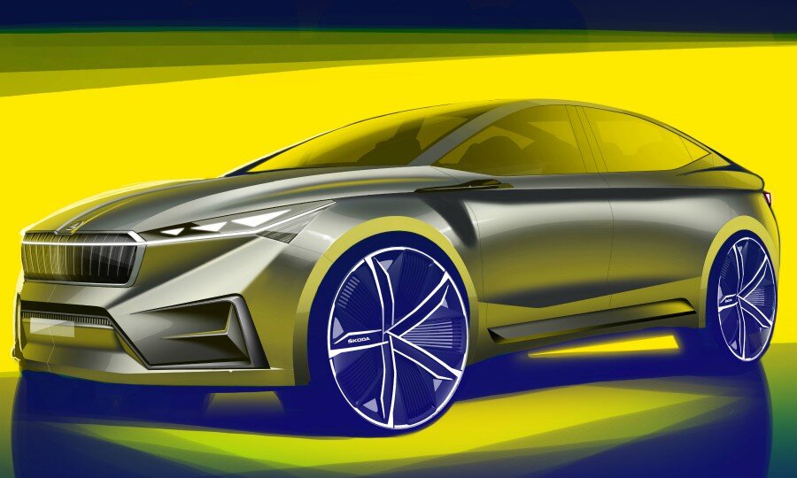 Skoda представит на Женевском автосалоне концепт полностью электрического купе-кроссовера, основанного на платформе Volkswagen Group MEB electric. Компактный концепт Skoda Vision iV – является обновленной моделью Vision E, впервые показанной в Шанхае в 2017 году, которая пойдет в серийное производство в 2020 году. В преддверии дебюта 5 марта в Женеве, Чешская команда показала эскизы будущего электрокара. Они удивят тем, на сколько плавной стала линия крыши, скрытыми дверными ручками и камерами вместо традиционных боковых зеркал. Мы так же видим огромные 22-дюймовые колеса, которые гораздо больше тех, что использует Skoda на своих серийных моделях. Решетка представляет собой интерпретацию традиционной решетки Skoda с вертикальными ребрами, но с линией, пересекающей верхнюю четверть. Skoda ранее заявила, что ее электромобили должны понравиться клиентам не только своей стоимостью, но и ценой на дополнительные батареи. “Мы считаем, что электромобили в будущем обязательно будут доро