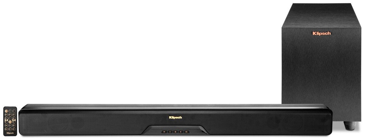 Лучший и самый дорогой саундбар компании (плюс, разумеется, беспроводной сабвуфер). Глубокие, богатые басы, лучшее качество звука, суммарная мощность до 200 Вт, но при этом и стоимость, близкая к цене Klimpsch RF, так что далеко не каждый может позволить себе такую систему. Есть HDMI с поддержкой видео 4К-качества, возможность синхронизации с любой другой беспроводной аудиотехникой Klipsch, продвинутый пульт управления в комплекте. Конфигурация звука 2.1.