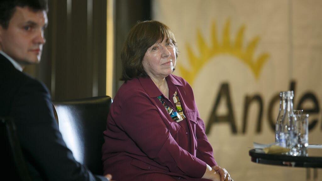 — По формату встречи, — взял слово CEO компании Andersen Александр Хомич. — Пользуясь правами организатора, я задам Светлане Алексиевич вопросы, которые подготовили ребята нашей компании. Все те, кто находится в зале, или смотрит онлайн-трансляцию, могут задать свои вопросы в комментариях. Мы выберем самые интересные и также зададим.