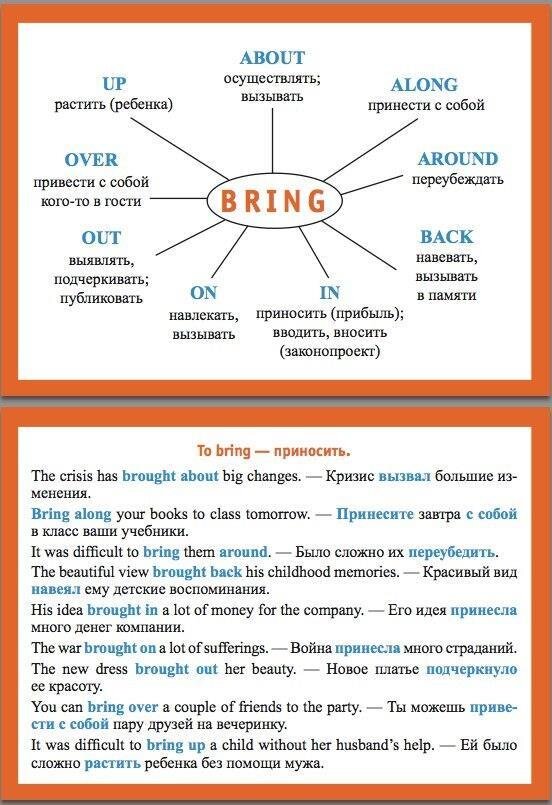 Изучаем легко и быстро фразовые глаголы Bring, Turn, Hold, Look, Set, Check, Go, Back, Let, Take.