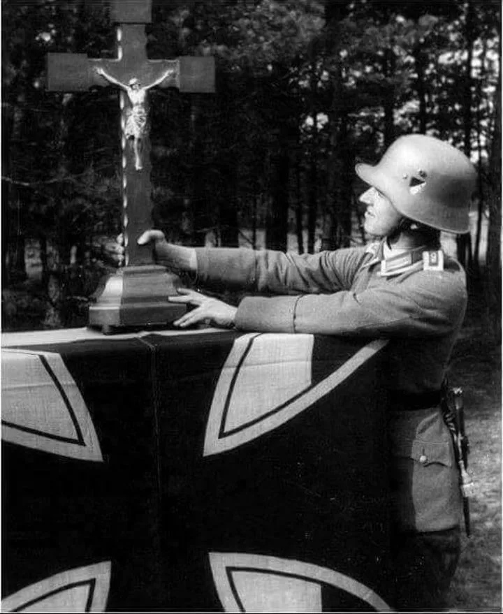 "В то самое время, когда союзники Америки, Советы, разрушили большинство христианских церквей в России и Украине, около 2500 новых церквей были построены в Германии. Не одна христианская церковь не была закрыта. Существовал закон, по которому школа и церковь имела приоритетность перед членством в "Гитлерюгенде". В конце осени 1944 года, к казармам СС в Бреслау было приписано два автобуса, чтобы они отвозили молодежь к ближайшей католической или протестантской церкви каждое воскресенье. Посещение христианских церквей не мешало карьере в Национал-Социалистической партии". Из книги Ганса Шмидта "Жизнь в Германском Рейхе от присоединения Саара в 1935 году до раздела страны в 1945 году".