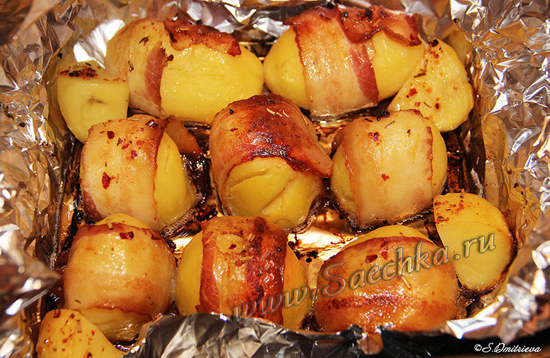 Картошка в беконе - самостоятельное блюдо. И ничего к нему не нужно. Получается картофель всегда очень вкусным и ароматным! Ингредиенты: Как приготовить:
