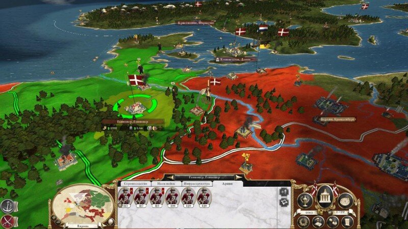 Одно дело открыть фракцию - а другое дело уже выжить за неё. Правда есть и такие минорные фракции, которые, собственно, и не минорные, но отчего-то были напрочь закрыты разработчиками. Такими фракциями являются Дания, Империя Моголов, Папская Область, Тринадцать Колоний, Новая Испания, Луизиана, Персия, Венеция, Генуя и Майсур. Майсур я включил сюда потому, что у него со старта очень крупный город и доступны улучшения, так что претворить в явь что-то вроде того, что внизу на скрине, вполне реально, если правильно действовать и сразу же начинать колонизацию окрестных частей света. То же касается и Италии.