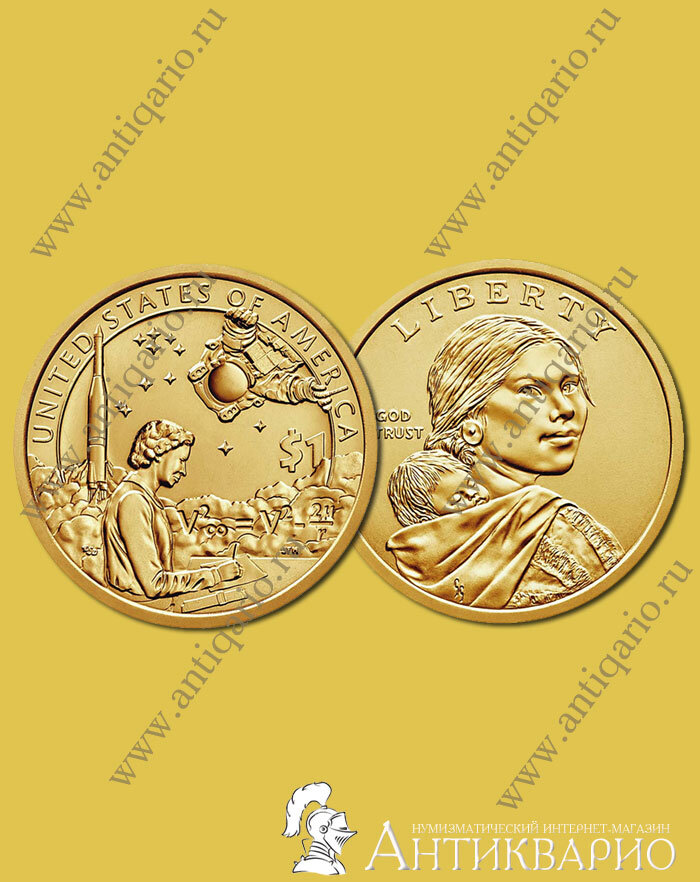 Памятная монета монетного двора США номиналом 1 доллар 2019 года (сакагавея или индианка) с изображением женщины, которое принимала очень большое значение в американской Космической Программе США. В качестве главного героя монеты выступила Мэри Голда Росс, первая женщина индианка инженер. Монета из банковского ролла UNC, без оборота! Характеристики монеты: Дата выпуска: 13 февраля 2019 года Номинал: 1 доллар Серия: Коренные американцы (индианка) Сплав: Сплав меди, никеля и цинка Состояние: UNC - отличное, из банковского ролла Диаметр: 26,5 мм На монете доллар США из серии коренных Американцев 2019 представлена известная женщина инженер Мэри Голда Росс, которая делает вычисления на листе бумаге. Позади нее, на фоне звезд, видна сцена запуска ракета и в облаке дыма от нее мы видим управления. Это именно Марии Голда Росс (Чероки) помогла разработать и вывести формулы для запуска космических кораблей. В верхнем правом углу изображен космонавт, который представляет интересы «коренных амер
