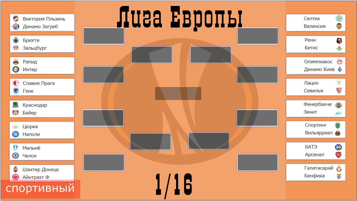 Расписание ответных матчей. Одна встреча состоится в среду 20 февраля, это игра Севильи и Лацио. Остальные игры в четверг, время московское.