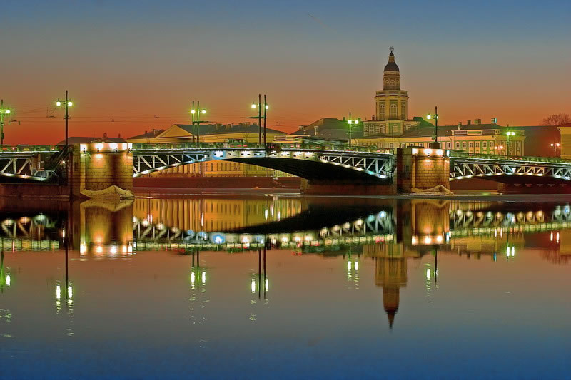 Новая рубрика, в которой мы будем рассказывать об одной из визитных карточек любимого города - Мостах. Дворцовый мост В середине 19 века, вскоре после строительства первого в городе постоянного моста через Неву (Благовещенского), сюда, к Зимнему дворцу переместили понтонный Исаакиевский, который до последнего времени связывал Университетскую набережную и Сенатскую площадь. После небольшого косметического ремонта он получил новое название — Дворцовый, в честь расположенного буквально в двух шагах Зимнего дворца. В 1917 г. Дворцовый мост большевики переименовали в Республиканский. Но новое название продержалось относительно недолго, и в 1944 г. оно было заменено на старое. Но разве таким должен быть столичный мост, символизирующий сотрудничество власти — Зимнего дворца и предпринимательства — Биржи? Поэтому уже в 80-е гг. 19 века стала очевидной необходимость создать постоянную переправу, которая связала бы Васильевский остров c Большой землей. Окончательное решение о замене понтонно