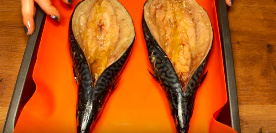 Готовим праздничное, вкусное блюдо! Равнодушным не останется никто! Нам понадобится: скумбрия 3 шт. ( на сколько человек накрываете, столько и скумбрии. Лук репчатый - 2 шт, киви -3 шт. соль, сыр, соус брусничный или клюквенный или варенье из клюквы или с любого красного кисло-сладкого варенья, уксус , перец черный молотый, Разделываем скумбрию- разрезаем вдоль по спине ( чтобы брюшко было не разрезано), вынимаем кости и кишки, промываем и просушиваем салфеткой. Лук режем полукольцами , добавляем 1-2 ложки варенья или соуса + уксус и немного соли И перца. Оставляем мариноваться на пол часа. Скумбрию слегка присаливаем, кладем маринованный лук, киви нарезанный ломтиками и сверху посыпаем тертым сыром. Выкладываем нафаршированные лодочки на противень и ставим в заранее разогретую духовку на 20 минут. Если Вам понравился мой рецепт- ставьте класс и пишите комментарии! Не забудьте подписаться на мой канал! Будет много интересных рецептов!