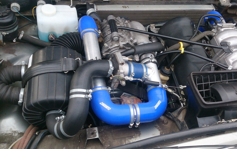 Самый большой плюс установки компрессора в том, что мотор не нужно дорабатывать. Максимальное давление компрессора составляет всего 0,5 бар, но при этом дает прибавку мощности мотору примерно 30-40 % (в зависимости от состояния вашего мотора).