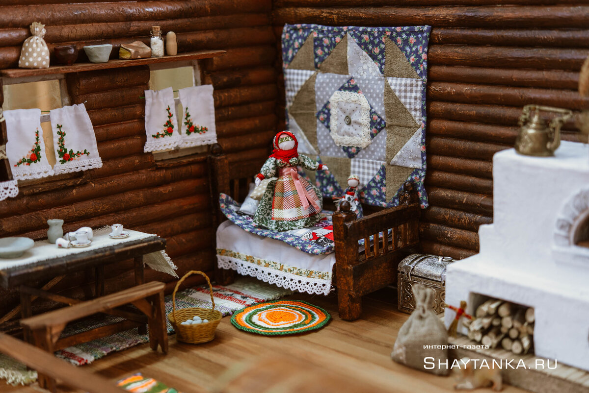 Все новогодние каникулы Ольга Маглиева корпела над сундуком, кроватью, столом, стулом, лавкой, лоскутным одеялком... Плясала от печи, а натанцевала на целую горницу в миниатюре. Здесь, практически, все по фэн-шую по-русски. Да, фарфоровой посуды не было. Но это, скорее, чтобы стол не пустовал в ожидании обжига глиняных чашек.