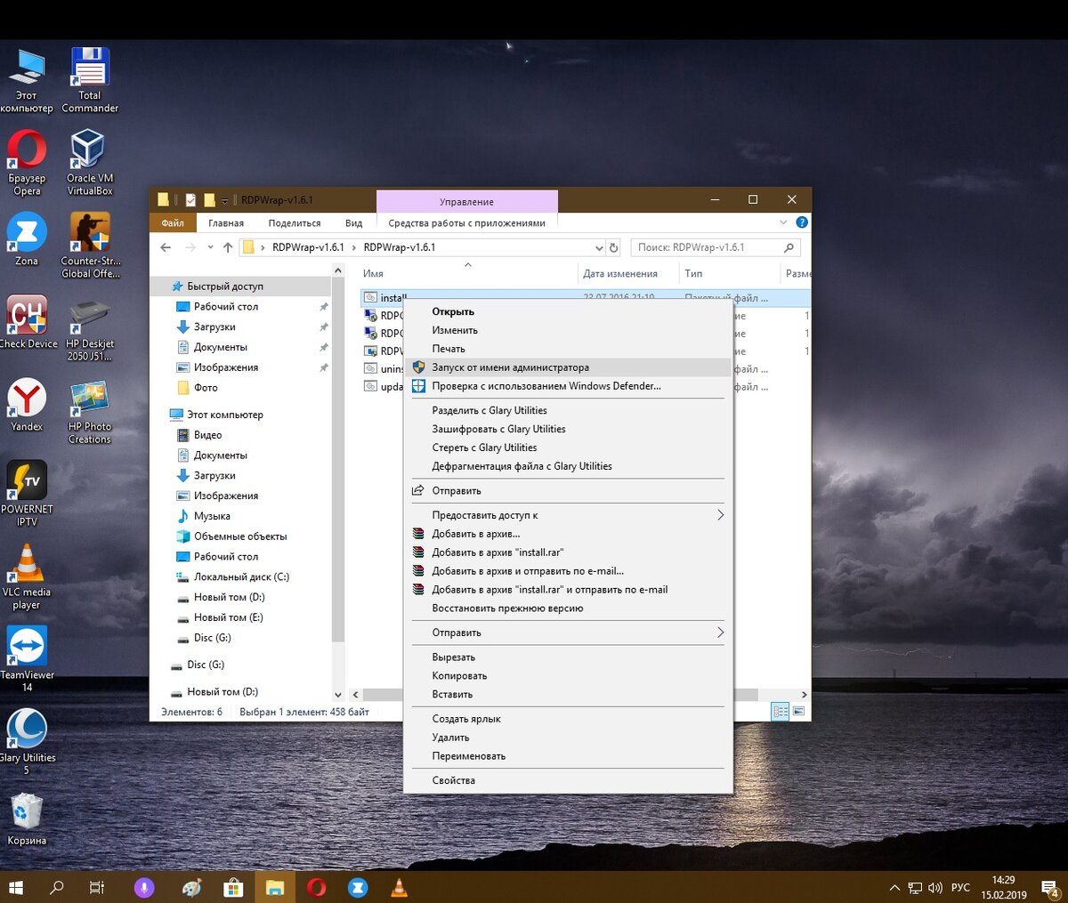 Полезная возможность сделать из обычной Window 10 терминальный сервер. Для небольшого коллектива из нескольких сотрудников это вполне удобно и оправданно, так как покупать полноценный сервер и серверную ОС для таких задач нецелесообразно. Для начала скачиваем программу RDPWrap и распаковываем архив, запускаем от имени администратора Установка завершена. Далее нужно создать необходимых пользователей с паролями, заходим в управление компьютером . Создаем пользователя и не забываем про пароль. Готово! Зная IP адрес нашего терминала, подключаемся через rdp Вводим адрес, имя пользователя и пароль Всё готово.