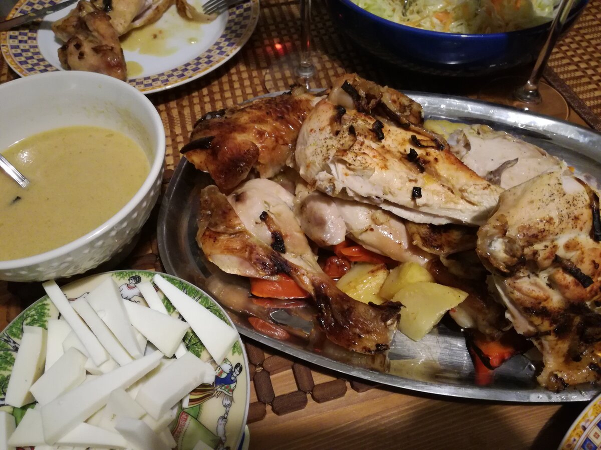 Этот рецепт появился спонтанно, когда я совершенно не знала, что приготовить , а накормить надо было двух голодных мужиков плюс времени в обрез, но немного предыстории.. Не так давно дядя моего мужа помогал нам делать ремонт в квартире, приходил с утра, целый день они стучали, гремели и всячески пытались облагородить наше жилище. Я всем варила кофе, готовила, крутилась и все бы хорошо, но сложность была в том, что дядя очень привередлив в еде (супы не ест, бобовые не ест, рыбу не ест и список можно долго продолжать) и приходилось придумывать что-то каждый день (на второй день он тоже самое не изволит есть). Под конец недели я безумно устала и уже не знала, что готовить..Пошла в мясной, купила курицу, попросила её разделать, чтобы уложить плашмя на противень, пришла домой и с настроением "была-не была, а ну его на фиг!" принялась готовить. Сели за стол, дядя поел и спрашивает, - Анна, а что ты в курицу положила? Блин, думаю, -щас начнется, но там даже придраться было не к чему ибо были