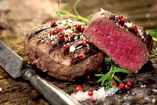 Как выбрать вкусный кусок мяса — а потом не испортить его при жарке! Хороший стейк — это тот случай, когда весь вкус заключен в самом продукте, тут не надо ничего улучшать, не испортить бы то, что есть. Обычное поварское «хм, а что будет, если я добавлю чуть вот этого, прибавлю жара и перемешаю?» — которое в обычной кулинарной жизни, как всякое проявление творчества — мы очень одобряем, здесь не пройдет. Надо действовать четко и решительно, как в аптеке, или в кондитерском цеху. Вот набор основных правил работы со стейком, с момента его покупки до момента помещения в рот. 1. Выбор Чтобы стать хорошим стейком, мясу нужно быть максимально нежным и/или насыщенным достаточным количеством жира, который обеспечит стейку достаточную сочность при жарке. Самый верный вариант — рибай, он достаточно жирный и его проще всего приготовить на сковородке. Прекрасные стейки получаются из вырезки. Эта мышца при жизни животного вообще никак не работает, а значит сохраняет первозданную нежность. Но тут у