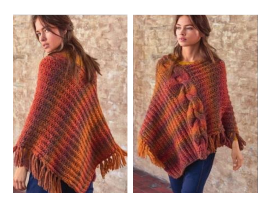 Для размеров 36-46. Материалы для работы: 300 г медной 48% альпака, 37% шерсти, 15% полиамида, 80 м/50 г; круг, спицы № 9; крючок № 8 для привязывания кистей. Край с узелками: первую петлю каждого ряда снять как лицевая. Последнюю петлю каждого ряда провязать лицевой. Края всех деталей выполнять с узелками. Полупатентный узор с косой: вязать по схеме. Во всех не приведённых на схеме изнаночные ряды петли провязывать, как в первом ряду. Начинать с петель перед первой стрелкой, повторять 2 петли раппорта между стрелками, заканчивать петлями после второй стрелки. Выполнить 1 раз 1-й - 29-й ряды, повторять 14-й - 29-й ряды. Полупатентный узор: вязать по схеме. Начинать от левой кром. с 2 п. перед первой стрелкой, повторять 2 петли раппорта между стрелками, заканчивать 2 п. после второй стрелки и кром. Лицевой ряд начинать с кром. с правого края и 2 п. перед правой стрелкой, повторять 2 п. раппорта между стрелками, заканчивать 2 п. после левой стрелки. Повторять 1-й и 2-й ряды. Плотност
