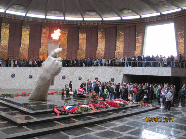 Страница 7 (Фото автора) На Мамаевом Кургане У подножья Мамаева Кургана воздвигнут комплекс, где на гранитных плитах высечены имена погибших защитников. Как и у могилы Неизвестного Солдата в Москве здесь постоянно на посту воины Почётного караула. Смена караула. На Мамаевом Кургане у церкви, построенной в честь погибших воинов встретились с начальником музея, который разрешил посетит комплекс "Сталинградская Битва" Он подчеркнул, что во время празднования Дня Победы город Волгоград называют Сталинградом. В этот день проходили съёмки передачи "Играй гармонь" Ну как не сфотографироваться с ребятами из роты Почётного Караула. Тут они в повседневной форме одежды, но по снимку Карасик с Мазовым поняли, что служить в этой роте, даже если бы захотели явно не дано. Росточком не вышли. Кладбище на Мамаевом Кургане.С каждым годом всё меньше становятся безымянных могил. Спасибо и низкий поклон поисковикам. Молебен в часовне у кладбища по погибшим воинам Ну что, мой боевой друг, с Днём По