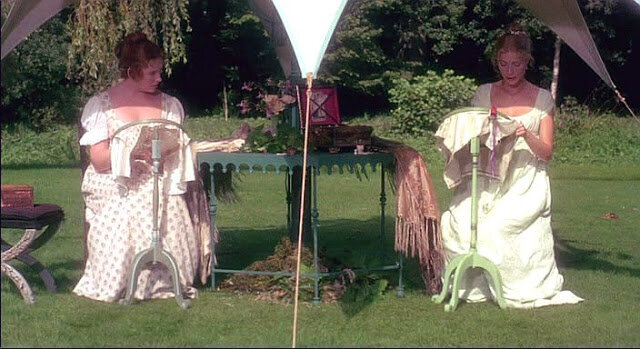 Впрочем, и принимать объяснения в любви можно, лишь на время отложив пяльцы с вышивкой. Правда, Фрэнк Черчилл слова любви посвящал другой, но невовремя прерванная беседа породила двусмысленность. Эмма приняла сказанное Фрэнком на свой счет.