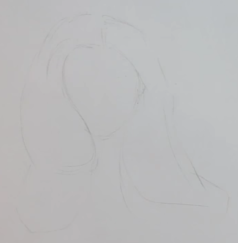 Для начала проведем контуры волос примерно до плеч. 2 этап