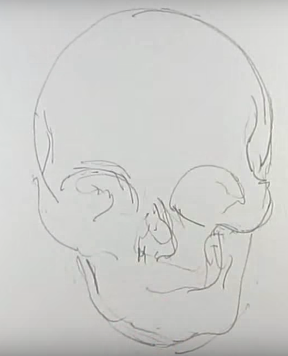 Изображения простым карандашом на белом фоне создают контраст, они насыщены, сразу же притягивают интерес зрителей. Твердым карандашом сделайте набросок главных черт. Лобную кость изобразите в виде круга, затем прорисуйте скуловые кости и нижнюю челюсть. Примерно отметьте глазницы и носовую щель, а также проведите полосу, где будут находиться зубы. Не давите на карандаш, ведь это набросок. Прорисуйте височные доли. Для изображения глазных впадин нарисуйте четырехугольники с закругленными углами, а нос можно сравнить с перевернутым треугольником. Прорисуйте мелкие детали. Темным карандашом прорисуйте все внутренние плоскости и начинайте заштриховку. Добавьте детали, например, надломы в костях. Вооружившись разными карандашами, наложите светотень и тень на горизонтальной поверхности. Больше примеров на нашем сайте: http://juicep.ru/?p=6868 Присылайте получившиеся рисунки в комментарии, лучшие мы выложим в нашу группу ВКонтакте!