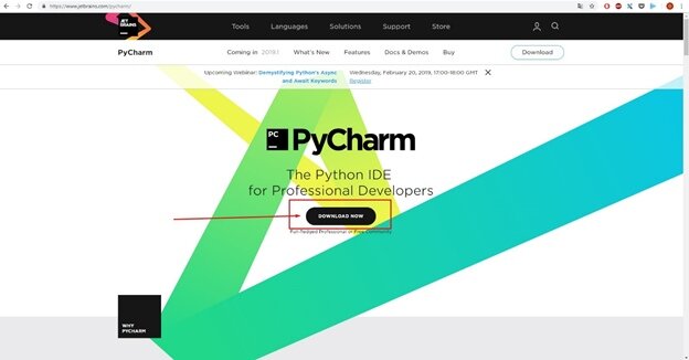 Сначала мы с вами скачаем и установим IDE (Integrated Development Environment) PyCharm, или по-другому интегрированную среду разработки для Python. Скачать его можно на сайте JetBrains: https://www.jetbrains.com/pycharm/ Нажимаем на кнопку Download прямо по центру. Проверяем что, мы находимся на вкладке Windows. И перед нами предстает выбор, что скачивать: Professional или Community версию? Я предлагаю скачивать версию Community, она бесплатная и обладает всем необходимым для начала автоматизации тестирования. Нажимаем на кнопку скачать, и обратите внимание, что загрузка PyCharm уже началась, и заполнять на самом сайте ничего не нужно. Открываем установщик PyCharm и нажимаем первую кнопку Next. Попадаем на тако
