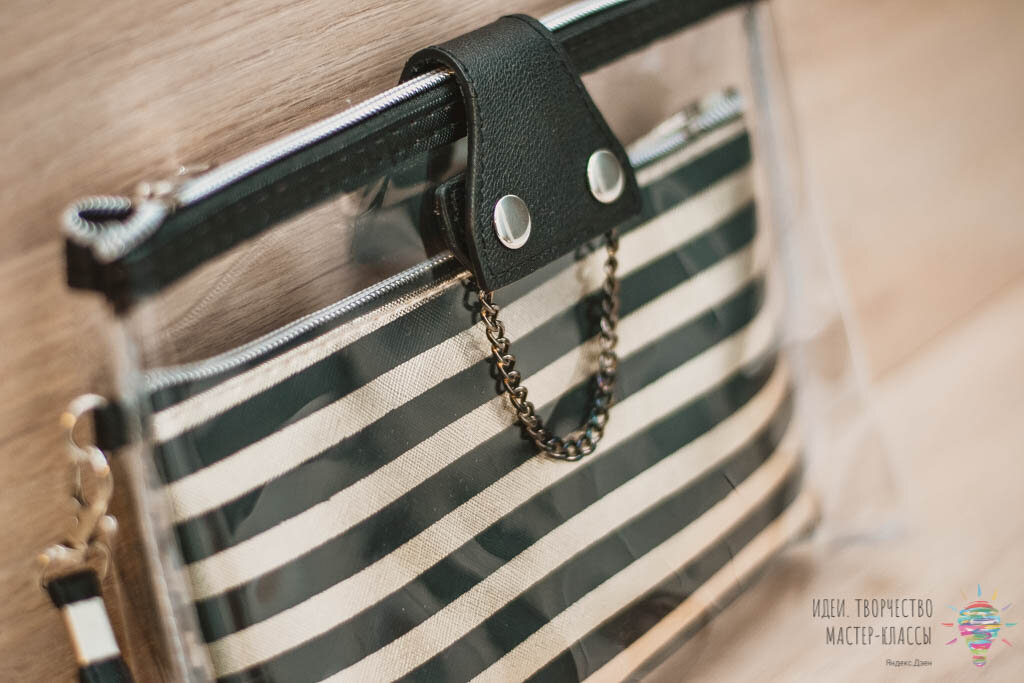 Друзья, всем привет! Сегодня мы будем превращать косметичку в стильную прозрачную сумочку! Делается это довольно быстро и не займет у вас много времени! А результат - ну очень симпатичный! _____________________________________________________________________________________ Итак, для изготовления сумочки нам понадобятся: ______________________________________________________________________________________ Первым делом достаем внутреннюю часть косметички и начинаем работу с внешней, прозрачной частью ( Пример 1 ). ______________________________________________________________________________________ Прикладываем к ней крепление от ремня, чтобы максимально аккуратно зафиксировать нижнюю застежку ( Пример 2, фото 1-2 ). Делаем узелок (желательно) между слоями, а не в нижней или верхней части застежки ( Пример 2, фото 3-4 ). ______________________________________________________________________________________ Теперь эту нижнюю застежку пришиваем к нашей будущей сумочке, при этом не