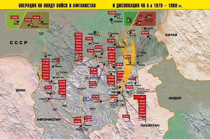 Ввод советских войск в демократическую республику Афганистан осуществлялся по трем направлениям: Кушка — Шинданд — Кандагар, Термез — Кундуз — Кабул, Хорог — Файзабад. Десант высаживался на аэродромах Кабул, Баграм, Кандагар.