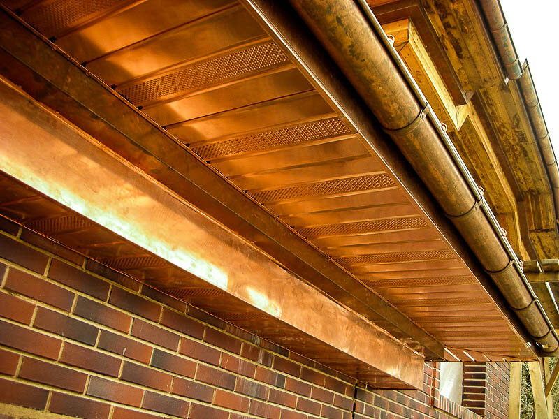 Металлические материалы для подшивки свесов достаточно разнообразны. Они отличаются и по виду используемого металла, и по типу самого материала. Для этой работы применяется медь, алюминий, оцинковка, листовой металл, профнастил.