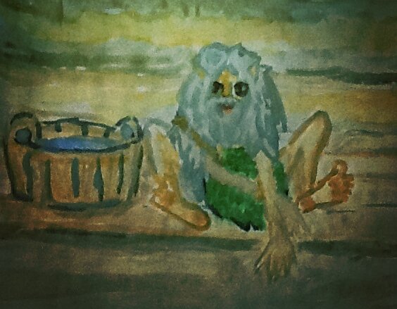 - В баню ночью ходить нипочем нельзя. Вон, девки ходили, хорошо говорят в бане было, тепло, не жарко. Пояски скинули, свечу затеплили. Глядь, а в углу косматый старик в тазу сидит, затих и смотрит на них. А глаза у него как у кошки: зеленые и светятся! Так то! Сначала Аксинья закричала, потом Фроська заголосила, а старик чихнул и половник на скамью уронил. Девки оттуда дали деру! Всех перебудили, а пятки так и не помыли. Ванька и с Ильей лежали на кровати за печью, круглыми глазами глядя на деда починяющего левый валенок. Пим прохудился снизу и стал похож на голодный рот. Дед уже пришил к одному валенку войлочную подошву и теперь подготавливал второй. - Дядька Киря ходил в баню потом, никого не нашёл. В тазу вода грязная стояла и листик березовый от веника плавал. А половник под полок закатился. Мальчишки спрятались под одеяло, высунув наружу только светлые головы. -Это так, безвредная нечисть, человеку, который к ней с уважением подходит она и подмогой бывает. В хлеву за скотиной у