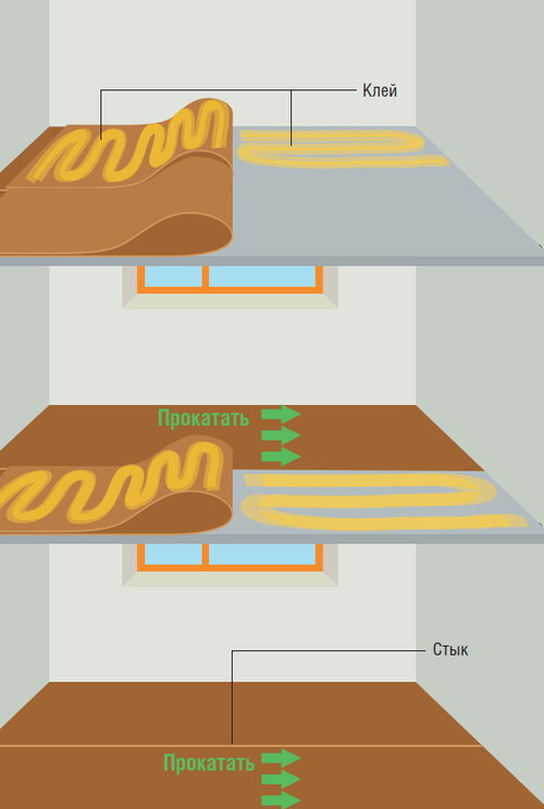 Как приклеить линолеум из двух и более кусков