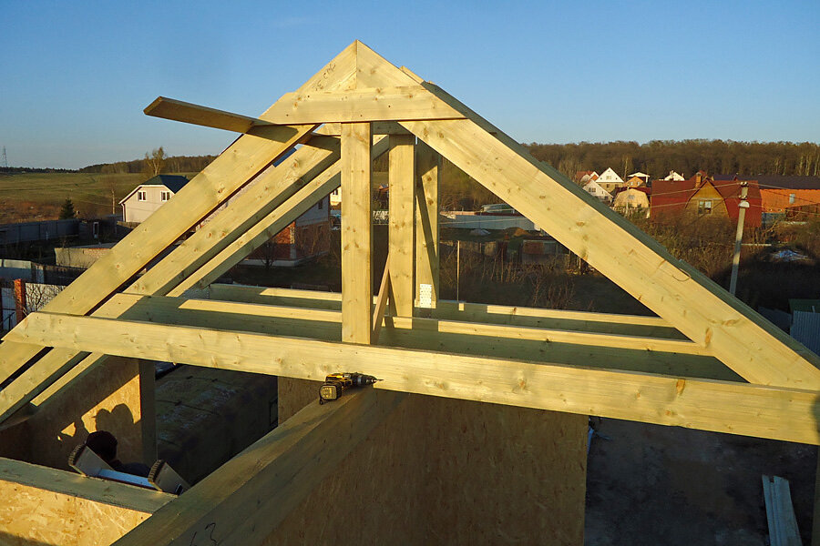 Если верха стропильных ног возвышаются над прогоном, то к подъему крыши следует прибавить 2/3 толщины доски или бруса, использованного в строительстве стропильной системы. Считается, что глубина врубки уменьшает толщину материала на треть.