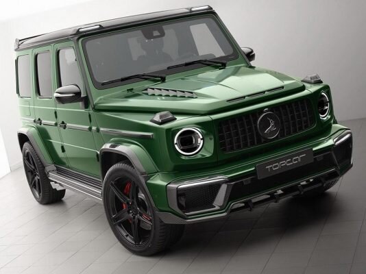 В российском ателье TopCar побывал Mercedes-Benz G-Class нового поколения, который обзавелся обвесом Inferno, предусматривающим замену практически всех кузовных панелей, что позволило сделать внедорожник похожим на “заряженный” G63. В частности, TopCar G-Class Inferno получил новые бамперы, капот, крылья, двери, пороги, крышу и даже крышку багажника для запасного колеса. Плюс тюнеры установили на машину иную решетку радиатора, дизайн которой во многом схож с решеткой “шестьдесят третьего”. Кроме того, в компании заменили все оригинальные шильдики на собственные логотипы с изображением акулы, а на крышу автомобиля установили дополнительные светодиодные огни. Представленный Гелендваген окрашен в ярко-зеленый цвет, а на его колесах красуются особые диски, доступные диаметром на 22 или 23 дюйма. Обвес Inferno в базовом исполнении оценили в 19 083 евро, при этом версия боди-кита включающая в себя целый ряд дополнительных элементов (например, карбоновые патрубки, дополнительные логотип