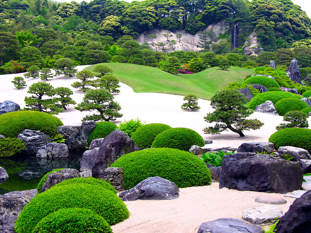 Третий рассказ из серии "Величайшие сады мира" Эти сады расположены в городе Ясуги японской префектуры Симана , они являются частью музейного ансамбля Адачи. Всего садов шесть - и каждый является как бы олицетворением той или иной особенности японской культуры. Здесь есть территория, повторяющая классический японский садик аристократической семьи, аллюзии на японские деревеньки, сады, традиционные для буддийских и синтоистских храмов, и сады, вобравшие в себя все эти традиции и переосмыслившие. Для европейца здесь очень мало свободы, так как пешеходные маршруты коротки и малочисленны - любоваться садом предлагается извне - со смотровых площадок, с террас музейных кафе. Это территория, освобожденная от назойливого присутствия человека, от следов его ног и шелеста его одежд. При этом здешняя природа не имеет ничего общего с естественным хаосом, присущим, например, английским паркам - для вишен, кленов, сосен, кустов и травы тут тоже нет свободы, они жестко постриж