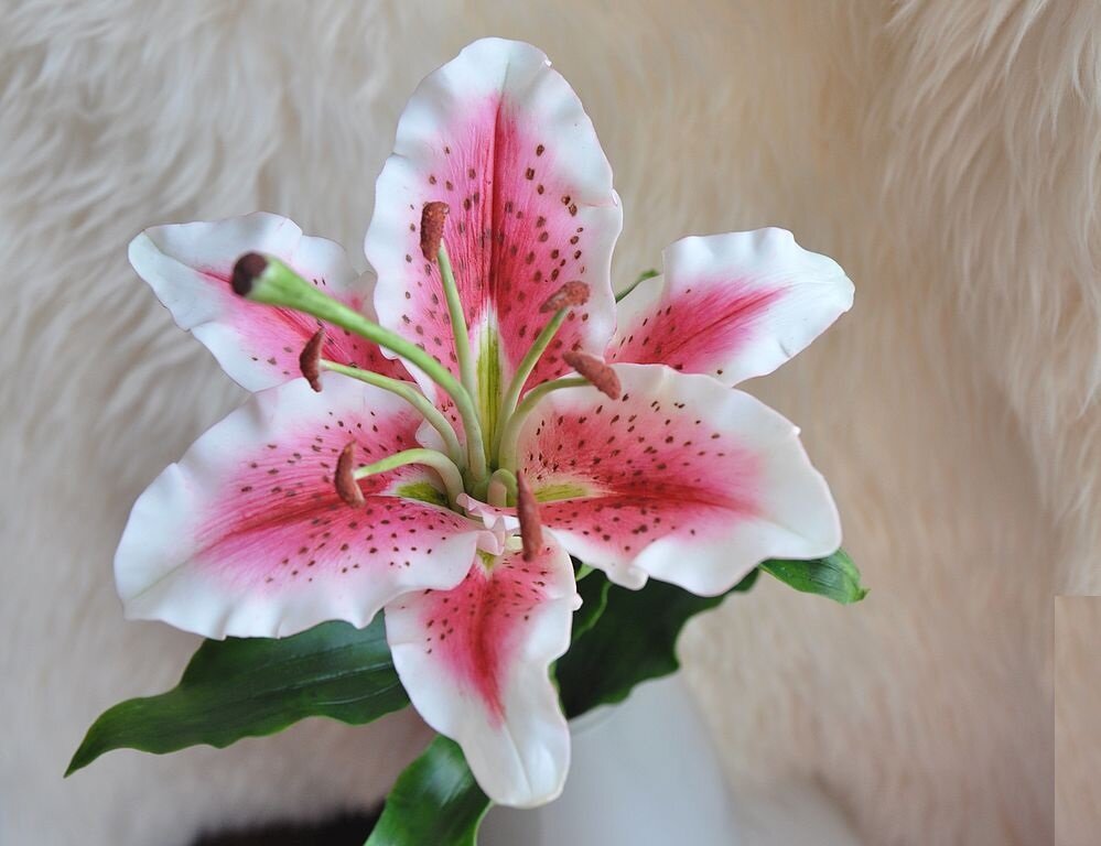 Будем делать белую лилию, но если вы хотите такую как на картинке, то лепестки и тычинки следует подкрасить краской соответствующего цвета и сделать крапинки на лепестках.