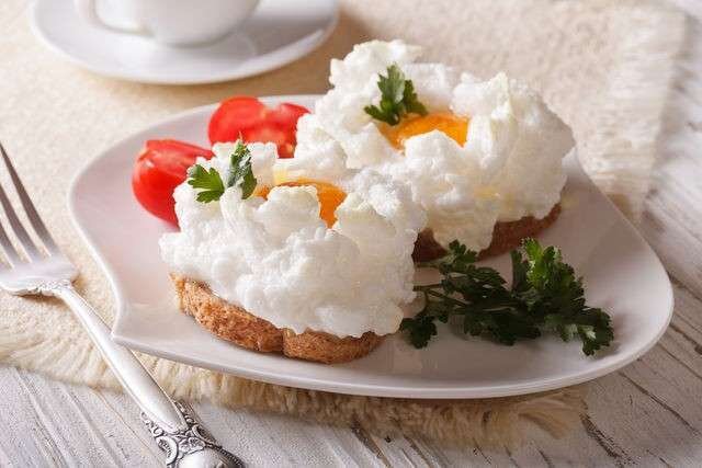 У миллионов людей по всему миру утро начинается с блюда из яиц – яичниц, омлетов, в мешочке, вкрутую, пашот… Этот привычный традиционный завтрак, но иногда хочется и чем-то удивить себя и своих домашних. Например, запеченные яйца – необыкновенно эффектное блюдо, требующее, однако, некоторой тщательности в приготовлении. Декоративность подачи делает это блюдо вдвойне аппетитным: гнездо из хрустящего воздушного безе и мягкий желток нежный желток. Согласно легенде приготовленные таким образом яйца – любимое блюдо художника-импрессиониста Клода Моне, а каким образом появился рецепт – теряется в истории. Если вам понравится рецепт и вы хотите поддержать проект, пожалуйста, поставьте палец вверх, тогда статьи и рецепты будут чаще включать в ленту. Иногда это блюдо называют также «Завтрак аристократа» и согласно традиции подают только с гренками из белого хлеба. И больше ничего. В интернете этот рецепт «гуляет» под разными именами: «яйца в облаках», «яйца на подушке», «воздушная яични