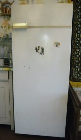 На даче у меня стоит далеко не новый холодильник. Он исправно работает, но внешний вид оставляет желать лучшего. Он весь обклеен наклейками. Некоторые наклейки со временем отклеились, а клеевой слой остался и запылился. Я решила дать холодильнику новый наряд. Как я это сделала, покажу подробно.