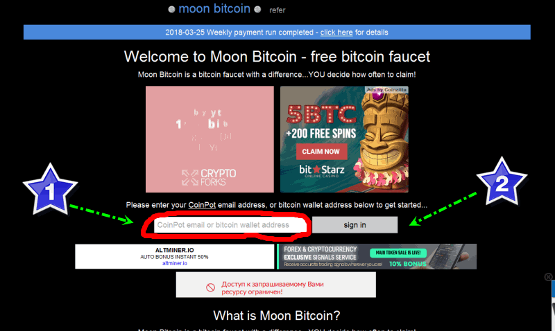 Регистрация на Биткоин (BITCOIN) кранах Биткоин кран № 1 1. Переходим по ссылке Биткоин (BITCOIN) и попадаем на страницу где нужно указать только Email (который Вы использовали при регистрации на coinpot.co) и нажимаем (sign in) регистрироваться! 2. Далее ставим галочку для увеличения бонуса, появляется список где выбираем самый последний пункт (Very high CPU usage (larger bonus) ) и нажимаем (claim now) 3. Тут вводим капчу и нажимаем применить 4. Копейка перешла в Ваш личный кабинет на coinpot.co (зайдя в свой личный кабинет и обновите страницу F5 ) ! Примечание: На этом кране можно снимать копейку каждые 5 минут. или каждый день либо 1-н раз в месяц.