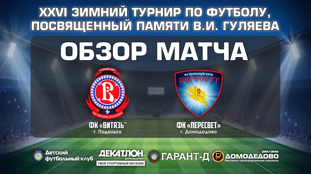 В субботу 16 февраля мы сыграли заключительный матч на групповом этапе Зимнего Турнира ФФМО им. В.И. Гуляева против ФК Витязь. Для ФК ПЕРЕСВЕТ матч конечно был с эмоциональной точки не очень простой, ведь игроки нашей дружины проводили только на этой неделе уже 5 матч за 6 дней, так даже в Англии не играют, это я не считаю прошлую неделю (там тоже много матчей было) - в понедельник 11 февраля играли в 1 Лиге Открытого Чемпионата по мини-футболу в УСК ЦСКА с МФК ЦСКА (1:3), затем во вторник 12 февраля в Лиге Чемпионов Московской области по мини-футболу в ФОК Ирида в Подольске играли против Пламя Истра (3:1), в среду 13 февраля в Москве на Арене Сокол играли 11*11 против Локомотив-м (1:0), и в пятницу 15 февраля там же на Арене Сокол играли 11*11 против УОР Егорьевск (1:0). Поэтому видно ребята устали именно эмоционально, физически видно было что все в порядке, да и Витязь все таки играл молодежной командой, что тоже немного сбило с толку. Но матч официальный да ещё и за первую строчку