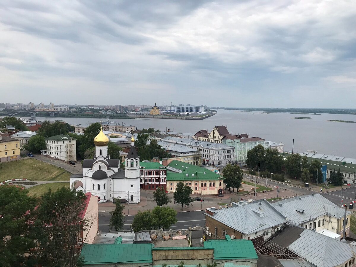 Нижний Новгород стоит на живописном месте слияния Оки и Волги. Нижегородский кремль возвышается над этим дуэтом и отсюда открывается шикарный вид на Стрелку.