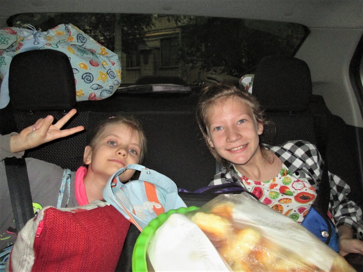Лягухи-путешественницы 9 и 12 лет пристегнуты на заднем сидении. На ближайшие часы - тазик с пирожками (причем все подписаны, ведь кто-то любит с капустой, а кто-то с картошкой:)) и большой термос чая. В автомобиле аппетит просыпается как в вагоне ж/д - с посадки.