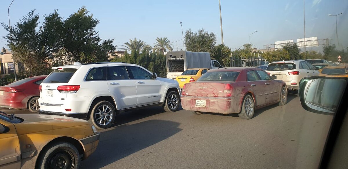 Продолжаем знакомство с далекой и малоизвестной путешественнику страной - Ираком. Сегодня прогуляемся по улицам столицы страны - Багдаду и посмотрим, как живет народ в мирное (относительно мирное) время. На дорогах наблюдаются постоянные пробки: Это связано с множеством чек-поинтов - постов, на которых проверяют автомобили. Такие точки расположены по всему городу и могут встречаться каждые 400 метров. Пробки на руку различным продавцам. Их часто можно встретить на дороге с различными безделушками: Иногда в пробке можно и перекусить. Этакий передвижной Макдональдс =) Это здание - что-то вроде бизнес-центра. В нем располагаются различные офисы, а также больница. Переход от здания больницы к школе: Багдад - довольно зеленый город. Деревья немного скрашивают серость зданий. Прогуляемся немного по центру Багдада. Начнем с осмотра самого высокого здания в Ираке - Багдадской башни. До оккупации в 2003 г американскими солдатами сооружение носило название "Международная башня Саддама". Не