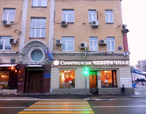 Если Вам и Вашей Даме немного за 40, и уж тем более за 50 - то пригласите её отведать вкусных настоящих чебуреков, но не говорите ей об этом до того, как решите это сделать -пусть это быть сюрприз! А теперь заходим внутрь - немного необычный антураж. Демократическая стойка -где можно заказать, всё -что душе угодно, в рамках разумного, конечно) Перед тем, как заказать чебуреки - возьмите солянку или харчо, "надо кушать жидкое" -говорила мне в детстве бабушка. Подходим к кассе и демократично выбираем Надо бы ещё вымпел "За качество обслуживания" рядом повесить. Пока чебуреки готовятся - мы берём две солянки и 4 пива. Венецианский пейзаж и над ним советско-партийный дирижабль - отсюда плохо видно. А так - в дирижабле сидят разные представители нашей коммунистической эпохи - полный сюрреализм! Чебуреки ждали недолго, пока рассматривали настенные рисунки венецианско-советской эпохи. Чебуреки брали с сыром и мясом -очень вкусные и сочные. Чек приятно удивил, на двоих -всего 1140 руб. Хотел