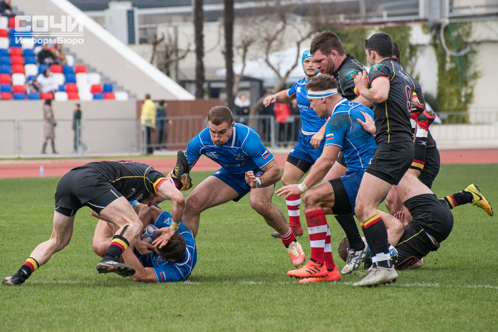 Матч второго тура чемпионата Европы завершился с разгромным для бельгийцев счетом. В субботу, 16 февраля, на Центральном стадионе имени Славы Метревели состоялся матч второго тура чемпионата Европы по регби между сборными России и Бельгии. Россияне в домашнем матче одержали разгромную победу над соперником. Удачные попытки себе в актив записали российские игроки Дмитрий Герасимов, Тагир Гаджиев, Андрей Поливалов, Герман Давыдов, Виктор Кононов, Владимир Остроушко, Василий Артемьев и Никита Вавилин. Завершился матч со счетом 64:7 в пользу россиян. На матч, вход на который для зрителей был бесплатным, пришли поддержать команду российские национальные сборные по вольной борьбе и боксу, а также паралимпийская сборная России по футболу. В первом туре чемпионата россияне проиграли испанцам со счетом 14:16. Следующую игру наша команда проведет 2 марта против команды Германии. Полностью фоторепортаж смотрите на сайте "СочиИнформБюро"